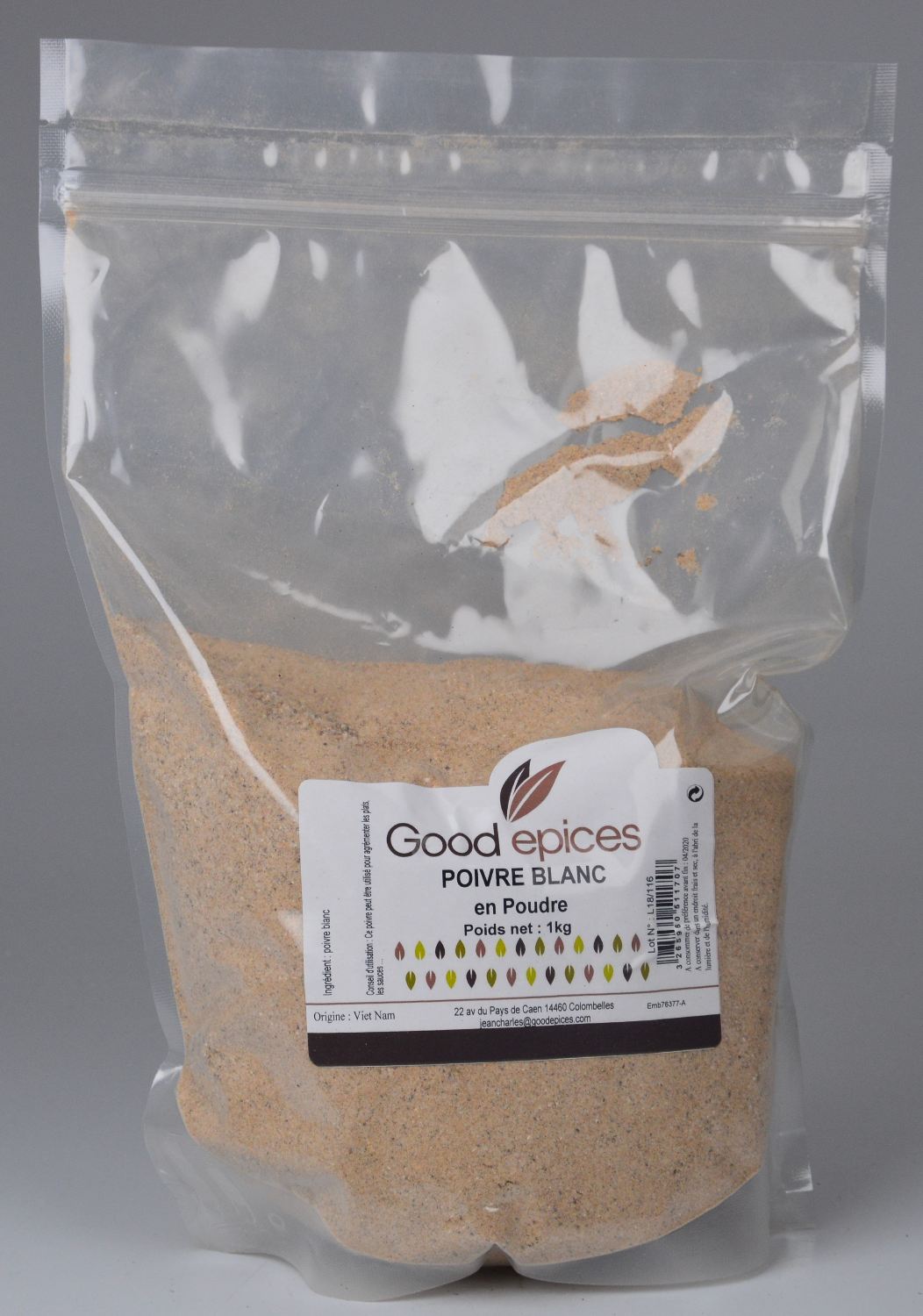 Poivre blanc moulu sac 1kg